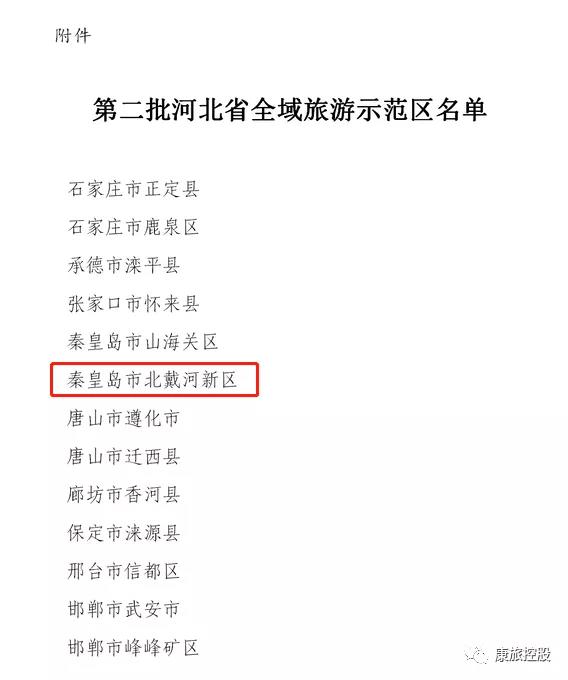 最新消息!據(jù)河北省文化和旅游廳公告,康旅控股集團(tuán)康旅科技發(fā)展有限公司(原河北新納瑞旅游規(guī)劃設(shè)計(jì)研究院)服務(wù)的秦皇島市北戴河新區(qū)成功入選為第二批省級(jí)全域旅游示范區(qū)!