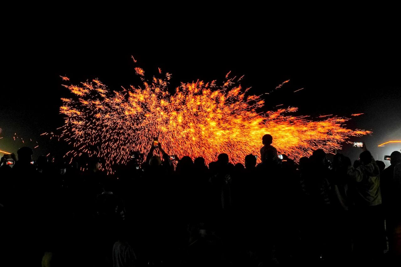 打造系列品牌活動,讓伏羲文化更火、更活、更生動。在伏羲臺璀璨的夜空下,無人機(jī)星空秀勾勒出新樂地標(biāo)與伏羲圖騰的恢弘畫卷,用新質(zhì)生產(chǎn)力詮釋千年文明,營造出震撼人心的視覺盛宴?;樗孜幕?jié)現(xiàn)場,開展中華民族婚俗文化特色展示活動,創(chuàng)新打造“打卡伏羲臺 免費(fèi)吃家宴”活動品牌。在非遺表演環(huán)節(jié),打樹花、火壺、火刀火棍、火扇火舞等項(xiàng)目在夜空中劃出一道道璀璨的花火,成為游客爭相打卡的亮點(diǎn)。
